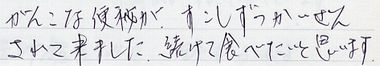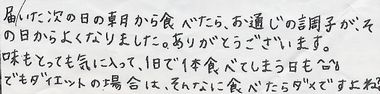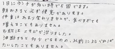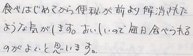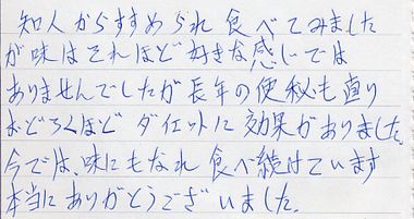 | がんこな便秘がすこしずつ改善されてきました。続けて食べたいと思います。 |